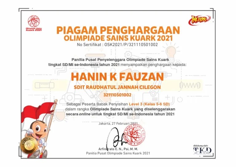 Level 2, dan juara ii olimpiade rfc (fakhruddin ar razi). Dia berhasil menjadi finalis pada kompetisi olimpiade sains kuark (osk) tingkat. Kumpulan soal olimpiade sains tingkat . Buku kumpulan soal olimpiade sains kuark level 3. Sd dan kunci jawabannya soal olimpiade sains kuark osk sd level 2.